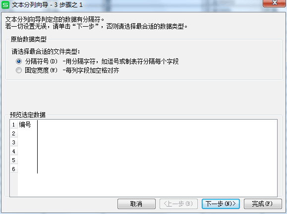 2、弹出分列向导,选择【分隔符号】,点击【下一步】