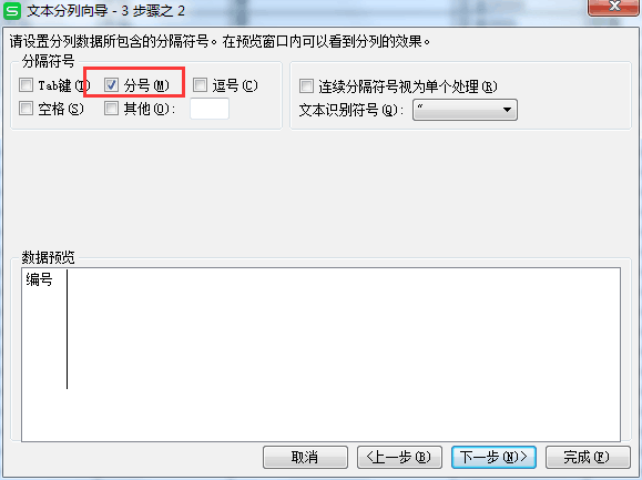 3、显示界面中把【分号】这一项打√,再选【下一步】